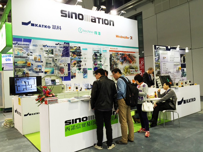历时5天的展会现场,本届工博会以“创新、智能、绿色”为主题,众多全球首发、中国首发的新品工业环保装备、新能源汽车、3D印等领域的创新成果悉数亮相吸引中外观众,西诺信齐聚六大品牌,再次以亮丽的色彩展示最热门的【芬兰KATKO凯科安全隔离开关】、【意大利Techno得洛防水连接器】、【德国Weidmuller全套电联接产品】、【意大利GMI防爆安全栅】、【德国DBK发热器与恒温器】、【法国KLS安全防护锁】等最新机电全套配件,此次西诺信首次展示订制轴控柜&电池柜的解决方案,已应用全套新款DBK加热器、温控器、湿度控制器、Weidmuller UPS电源、平板电源、I/O模块、重载接插件、继电器、端子、Techno得洛穿墙式防水连接器等应用方案,作为本次参展的亮点,吸引了场内参观者的广泛关注。