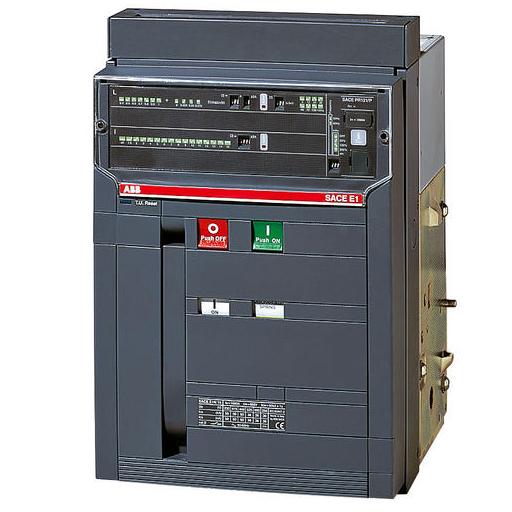 Automatic air circuit-breakers, SACE Emax New E1, Icu 415 V AC = 42kA, Size Iu = 1600A , Electronic trip unit with protection against overload, against instantaneous short-circuit, against selective short circuit and against earth fault with adjustable delay, In = 1600A, 3 poles, Version = Fixed, connection terminal = Horizontal Rear for fixed part