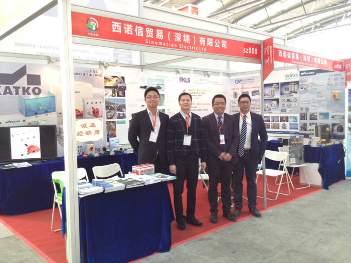 司再次齊聚五大品牌,呈現最全面的自動化全套配件及解決方案,向來自世界各地的業內人士展示最熱門的【芬蘭KATKO凱科安全隔離開關】、【義大利Techno得洛防水連接器】、【法國KLS安全防護鎖】、【義大利GMI防爆安全柵】、【天津Medxx電抗器與變壓器】等最新機電全套配件及最熱門新穎的【DC光伏匯流箱】解決方案吸引著參觀者的眼球,特別值得指出的是【DC光伏匯流箱】,通過KATKO DC直流開關控制魏德米勒防雷產品、以及DBK加熱器產品正常工作的轉換應用,匯流箱外使用Techno防水插拔式連接器可直接接入太陽能電池板,西諾信首次將全套新產品應用到DC光伏匯流箱,作為本次參展的亮點,引起了場內參觀者的廣泛關注。